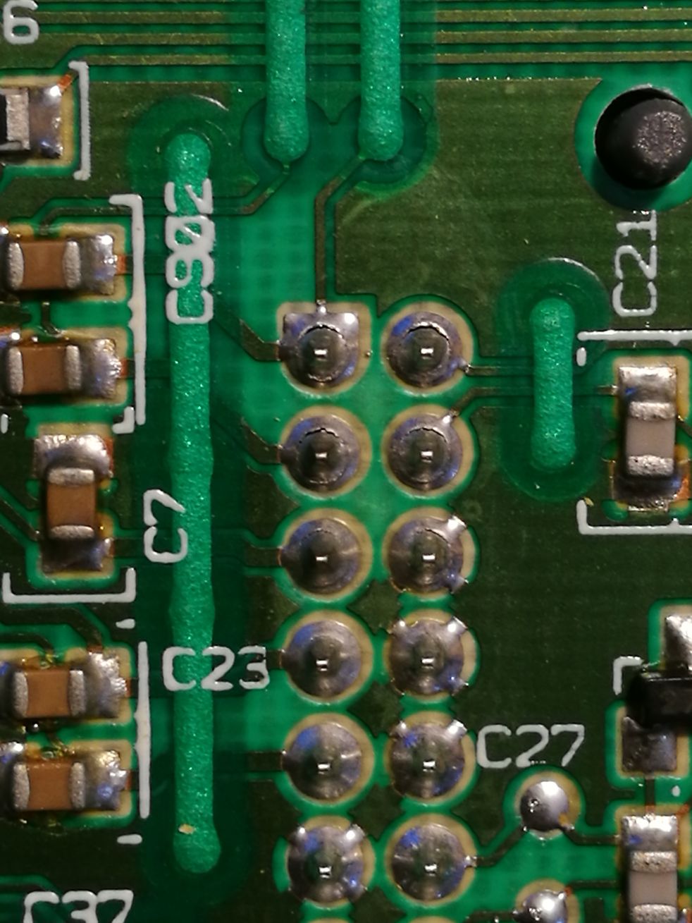 Od dwoch dni auto mialo problemy z uruchamianiem - dyskoteka na desce, informacje o niesprawnosci silnika, ukladu wspomagania itd, miganie immo brak reakcji na kluczyk (nie krecil). Wczoraj dopiero po kilkunastu probach auto zagadalo i szczesliwie dowiozlo do domu. Skan infrastruktury wykazal (tak jak podejrzewalem) usterki komunikacji szyny CAN - brak lacznosci z modulami. Krótki research w necie tylko upenil mnie w moich podejrzeniach, ze sypia sie zegary (tam miedzy innymi siedzi modul immo i bodaj sterownik szyny). Rozebranie licznikow ujawnilo sytuacje typowa dla fordow (patrz zdjecie) - nie trzeba byc elektronikiem aby stwierdzic, ze czescia lutow w zlaczu jest cos nie tak. Przelutowałem, złożyłem, auto działa