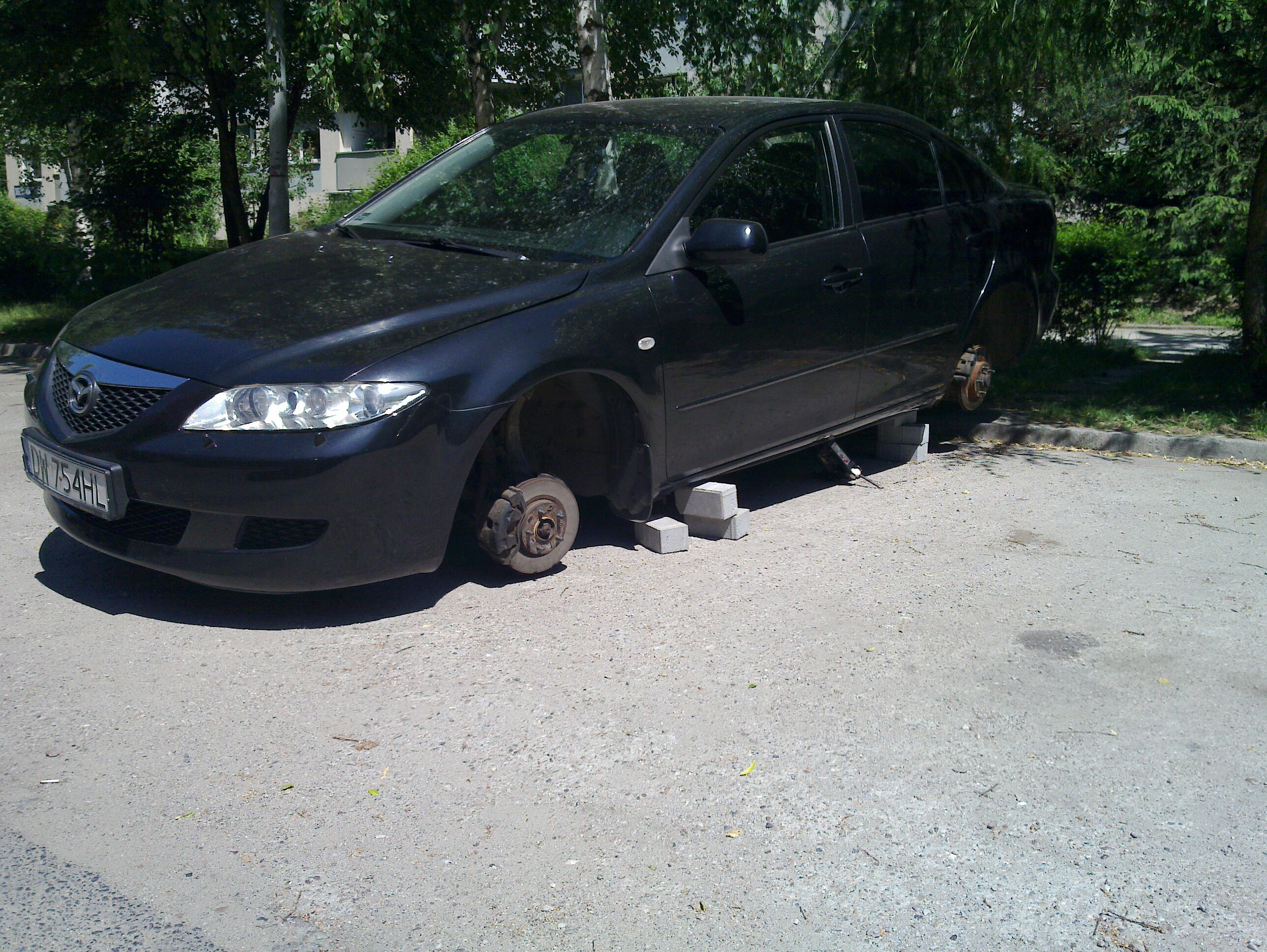A przepraszam bardzo, który z panów kierowców przy wymianie kół (naprawie lub jeszcze czymś innym) zamiast na podnośnikach ustawia auto na cegłach. Który z Państwa robi remont jednocześnie czterech kółek (lub podzespołów) .