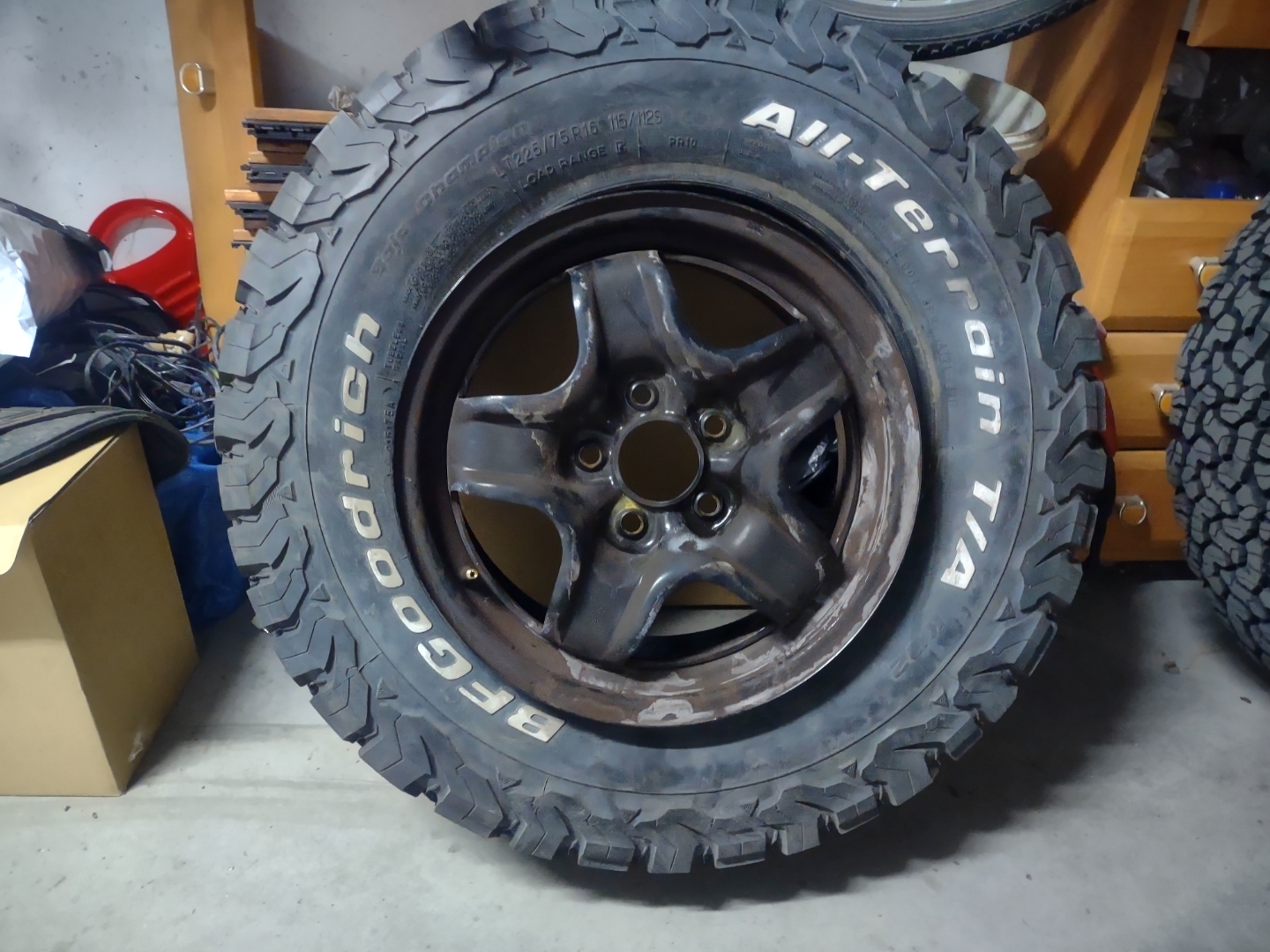 A kupca felgi/kolpaki wsadziłem w swoje koła, bo ja mam rozmiar 16 a jego 15''. I dzięki temu mniej miejsca zajmują
