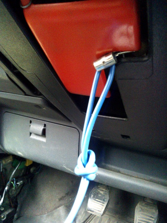 pociągnąłem kabel z wiązki dachu do akumulatora :) z lewej strony na prawą i nadkolem do akumulatora :)