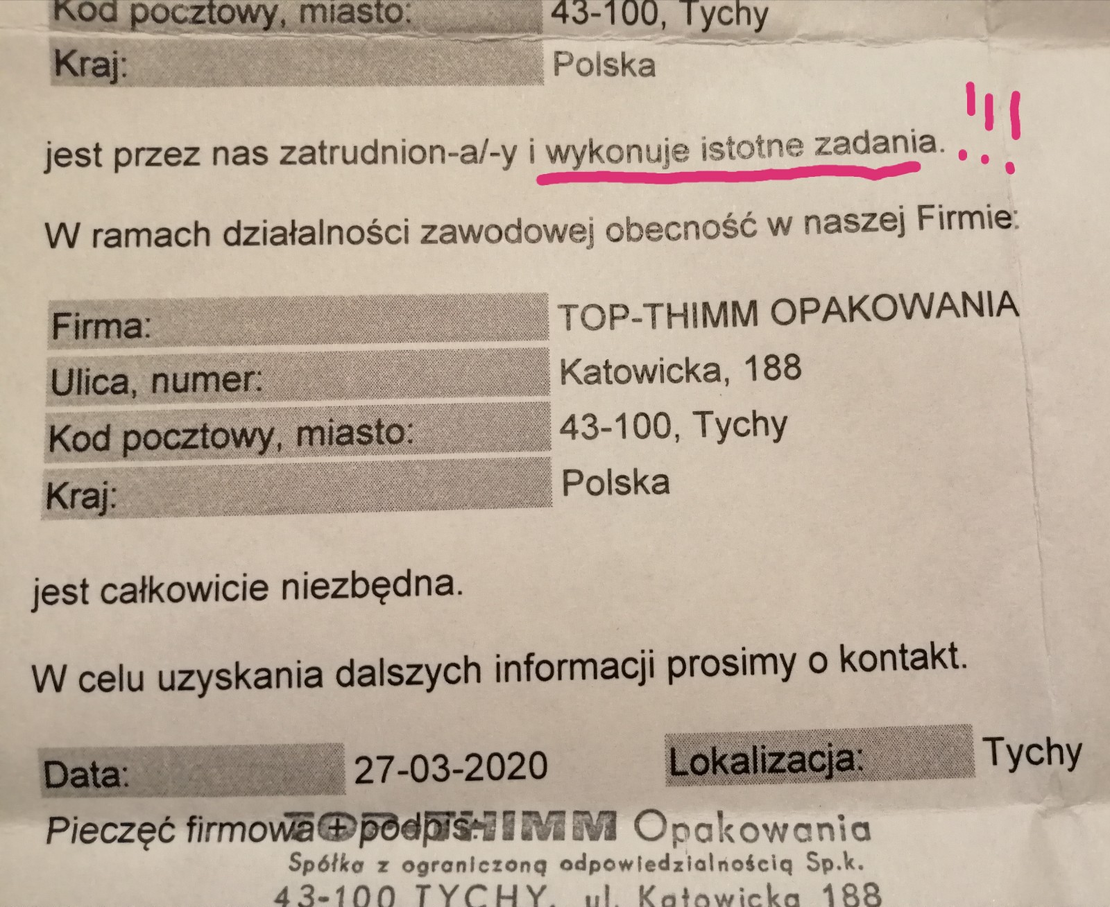 Żeby nie było. Mam papier że jestem potrzebny w pracy