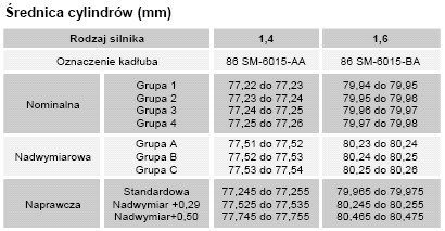 niestety pomimo że kupa osprzętu jest identyczna to w zasadniczych sprawach silniki te się różnią. Mają inne bloki i inne głowice. różnice są niewielkie, w wymiarach ale np. rozwiercanie 1,4 żeby wcisnąć tam tłoki z 1,6 to przy cenach tych silników gra nie warta świeczki. dla przykładu macie wymiary cylindrów: