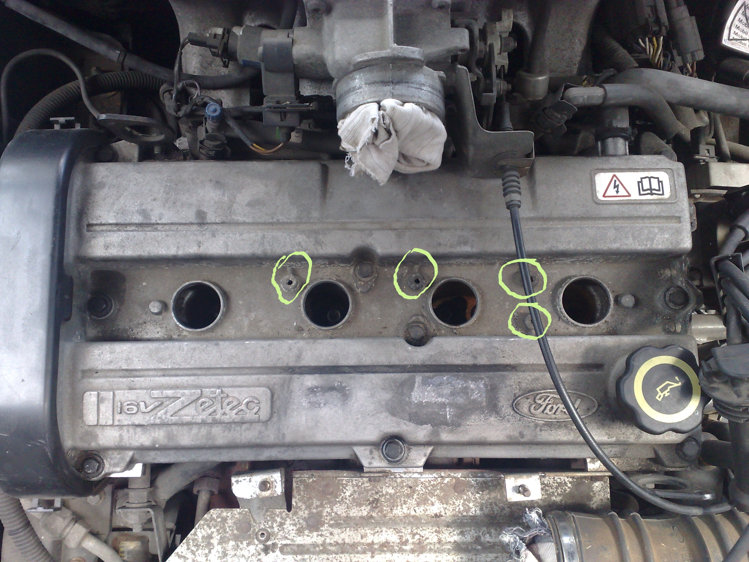 witam Panowie, po poludniu będę miał właściwą uszczelkę:) Proszę powiedzcie mi do czego są cztery nagwintowane otwory zaznaczone przeze mnie w pokrywie? Nie ma w nich zadnych srub i zastanawia mnie to, czy sa to po prostu jakies technologiczne otwory do osprzetu od innego modelu,czy tez cos innego? Drugie pytanie, jak zdjąc pokrywę od rozrządu, ktora również ogranicza zdjęcie pokrywy zaworów. POzdrawiam i z gory dzieki za pomoc:)