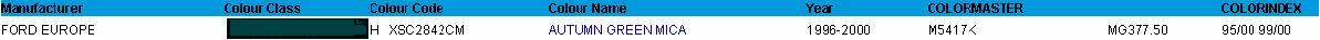 i drugie pytanie tak przy okazji, chodzi o symbol koloru auta, czy jest jakaś możliwość jego ustalenia? na tabliczce pod maską nie ma tego symbolu, a w fordMicrocat jest tylko nazwa "zielony autumn"